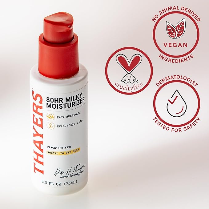 - Heavy Hydration, Lightweight Feel: Thayers 80HR Milky Moisturizer provides heavyweight hydration with a feather-light, non-greasy feel. Our fragrance-free non comedogenic face moisturizer formula won’t clog pores and is suitable for sensitive skin