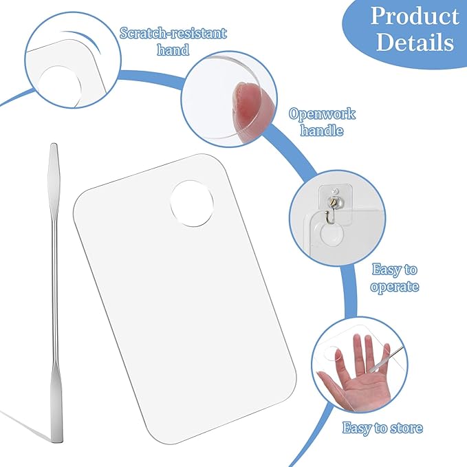 - 【Complete Makeup Mixing Palette Set】Aysatogc makeup mixing palette kit includes 1 transparent acrylic palette, 1 holographic acrylic makeup palette tray, 1 silver foundation spatula, and 1 holographic makeup palette mixer - perfect for professional makeup artists and beauty enthusiasts seeking versatile foundation plate for liquid makeup tools