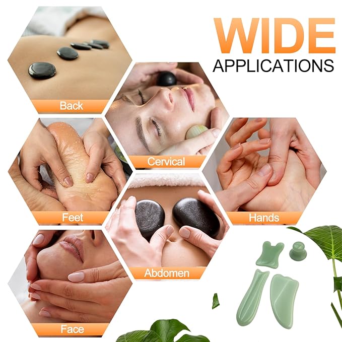 - Gwboorsd 4 Stone Set Stone Massage Set for Oil Warmer Massage gua sha for Professional or Home Spa, Relaxing, Pain Relief, Light Green Style