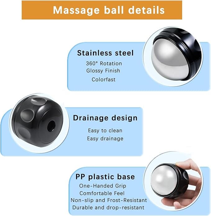 - HIGH-QUALITY MATERIALS: Made from 304 food-grade stainless steel and filled with nontoxic cooling gel, our cryosphere cold massage roller ball can be kept cold or warm for a long time. This gadget based on ergonomic easy-grip design, you do have the relaxation as well