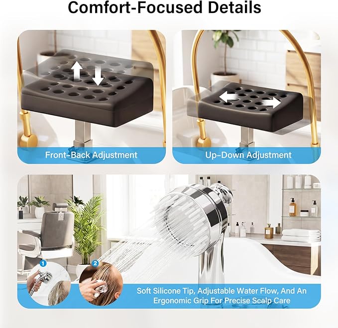 - 【Smart Heat Control with Waterfall Circulation】Enjoy steady warm-water rinsing with a soothing waterfall flow and multifunctional sprayer. The smart pump and digital controls let you adjust heat, pressure, and spray modes for a more comfortable, spa-level treatment.