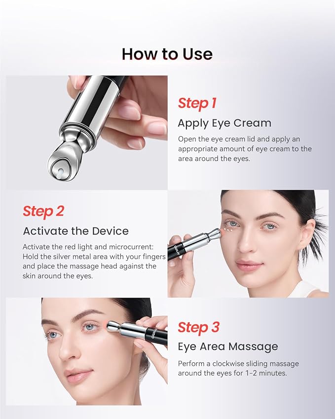- 【Red Light + Microcurrent Skincare Boost】Combines red light and gentle microcurrent technology to enhance skincare absorption and support a firmer, more refreshed-looking eye area with every application