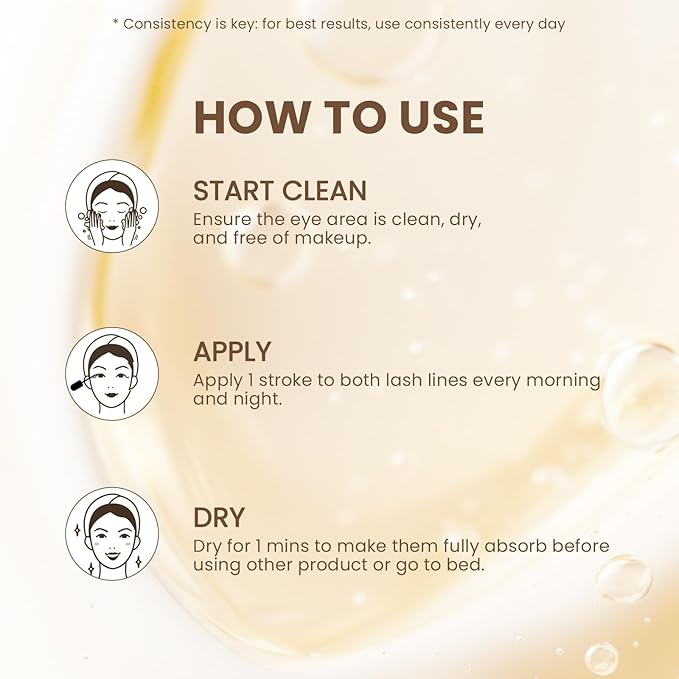 - Easy Daily Application:Apply the lash enhancing serum along the lash line every morning and evening. Allow one to two minutes for the serum to absorb and dry.