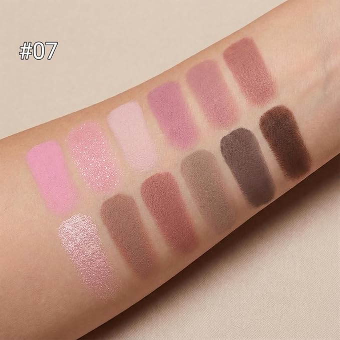 Erinde 12 Colors Eyeshadow Palette, Lavender Pink Neutrals & Nude Eye Shadow Makeup, Matte Shimmer Finishes, Long Lasting Ultra-Blendable Waterproof Eyeshadow Powder for Daily & Party, 07