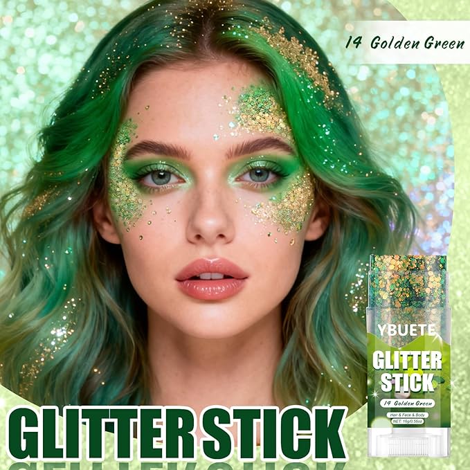 Golden Green Face and Body Glitter Stick for Sparkling Makeup, Hair Glitter Accessories for Women, Highlighting Stick for Fairy Dust, Cheerful Face Glitter for Festive Parties and Carnivals