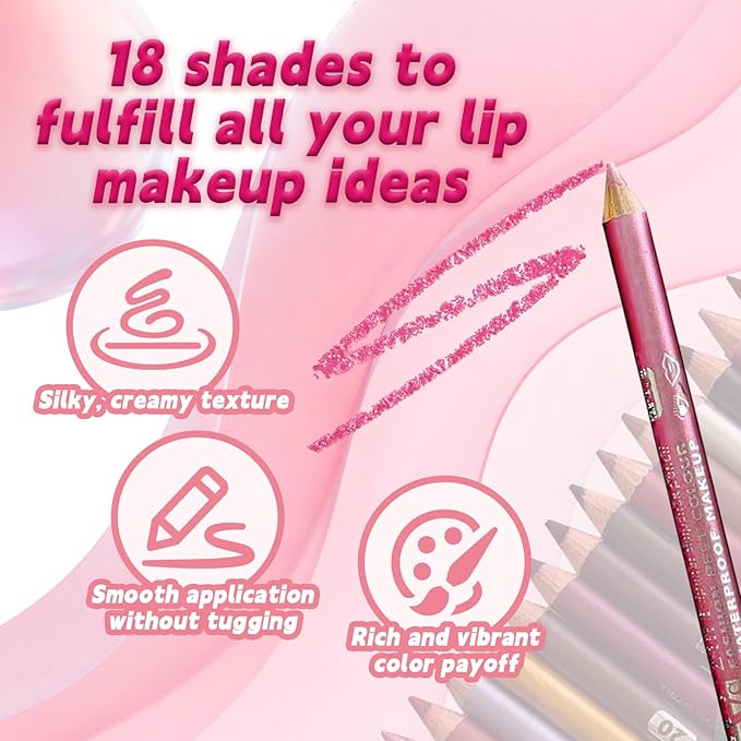 - 【Smooth & Hydrating】Say goodbye to dry, patchy lip liner pencil. This lip liner glides on effortlessly without tugging or pulling, keeping lips hydrated and comfortable all day long for a naturally flawless look. With 18 shades to choose from, it blends seamlessly with most lipsticks, enhancing your overall makeup with a refined, cohesive finish truly a practical must have.