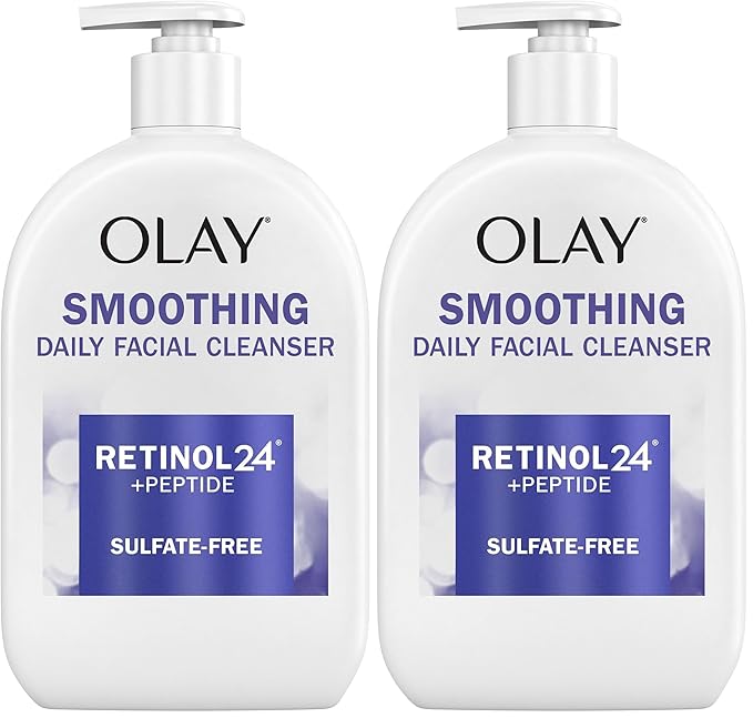 Olay Face Wash, Daily Facial Cleanser with Retinol, Peptides & Glycerin - Smoothing, Noursihes Skin Surface, Hydrates while Cleansing - Sulfate-Free, Paraben-Free, 16 Oz, (Pack of 2)